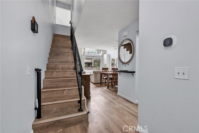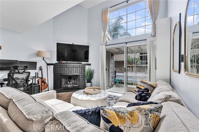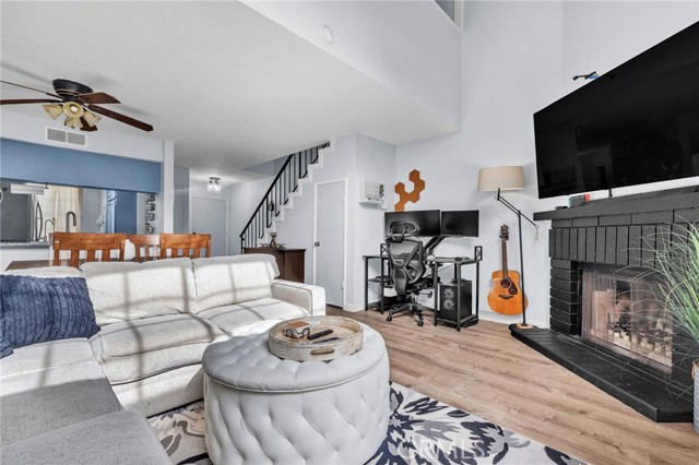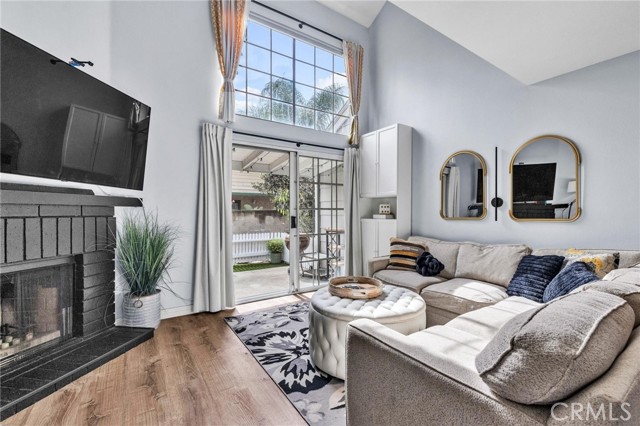 Welcome home to this stylish Townhome-style Condo in a beautifully maintained community! Upon entering you will notice the new vinyl plank wood like flooring throughout in a tasteful neutral color ~ the living room is light and bright with vaulted ceilings, fireplace and a large window above that lets in an abundance of natural light complete with automatic blackout blinds for those cozy nights! Kitchen has granite counters and stainless-steel appliances ~ updated downstairs bathroom with wainscoting which adds charm to this much needed space. Upstairs you will find a spacious primary bedroom complete with wardrobe storage and natural light from downstairs ~ Spacious walk-in closet is currently used as a baby nursery which takes advantage of the large space ~ ensuite primary bathroom with barn style door completes the look and adds privacy when needed ~ Extra storage under the stairs and many more amenities including updated paint throughout, central air and heating, and updated light fixtures ~ Step outside to a beautiful outdoor space complete with patio, freshly installed artificial turf, and a white picket fence for your private gatherings. Lastly, and of high importance, you will find a private laundry area and extra storage with access from the patio ~ and if this wasn't enough a detached garage with one parking space and more storage cabinets conveniently located a short walk from inside...You won't be disappointed!!!
