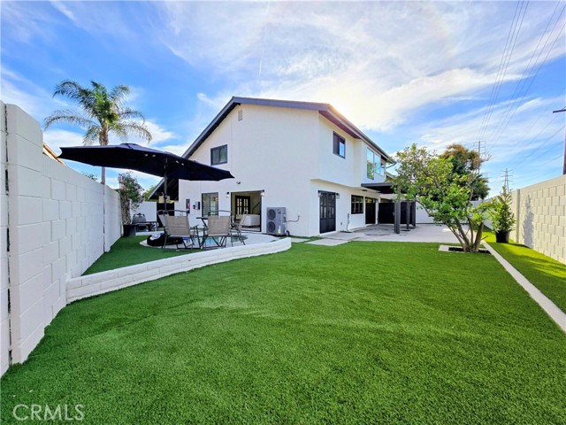 Some homes are updated. This one was reimagined. Set in one of La Palma's most coveted neighborhoods, 5091 Sharon Drive represents a rare opportunity to own a fully transformed residence where nearly $350,000 in luxury upgrades leave nothing left to want. From the moment you arrive, the craftsmanship is unmistakable. The gourmet kitchen is appointed with Jenn Air appliances and custom Koosah Pine cabinetry, designed for those who take cooking seriously. Natural limestone flooring flows throughout the main level, transitioning seamlessly to engineered hardwood upstairs, a combined flooring investment of approximately $40,000. The primary bathroom, finished in honed marble, is pure indulgence. Outside, the home is equally impressive. The rear yard features synthetic turf, a brand new in-ground hot tub with all new equipment, and expansive hardscaping and concrete patios built for entertaining on any scale. New stucco, Dunn-Edwards paint, updated doors and windows, and high-end exterior lighting elevate the curb appeal from the street. Out front, freshly installed Marathon sod completes the picture. Every system in the home has been overhauled to match the quality of the finishes: paid-off solar panels, new HVAC, new electrical, and updated irrigation and drainage. Inside, a redesigned staircase, all new interior and exterior doors, and spa-caliber bathrooms throughout speak to the level of care put into every decision. A nature trail just behind the property offers a quiet escape, while top-rated schools, parks, and convenient access to shopping, dining, and major freeways keep daily life effortless. For the buyer who refuses to compromise, this is the one.