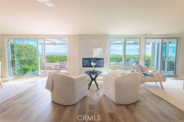 Enjoy sweeping, unobstructed ocean and horizon views from this beautifully updated single-level home, ideally located on a quiet cul-de-sac in the highly desirable 55+ community of Monarch Summit II Filled with natural light, the home features an expanded great-room living area created by opening the optional third bedroom, resulting in a spacious layout with walls of windows that frame the stunning coastal scenery. Recent improvements include new flooring, fresh interior paint, smooth-textured walls, new windows throughout, new countertops, and fully updated bathrooms, along with major system upgrades such as a new HVAC system, new water heater, and complete repiping. A private gated courtyard just off the kitchen offers the perfect spot for morning coffee or outdoor dining, while the secondary bedroom opens directly to the courtyard for seamless indoor-outdoor living. At the rear of the home, a spacious patio captures the panoramic ocean views and cool coastal breezes, creating an ideal setting for relaxing or entertaining. Additional features include two bedrooms, two bathrooms, indoor laundry, and an attached two-car garage. Residents of Monarch Summit enjoy beautifully maintained grounds, a clubhouse and pool, and convenient access to nearby parks and walking trails — making this a rare opportunity to enjoy coastal living in one of Laguna Niguel's most sought-after 55+ communities.