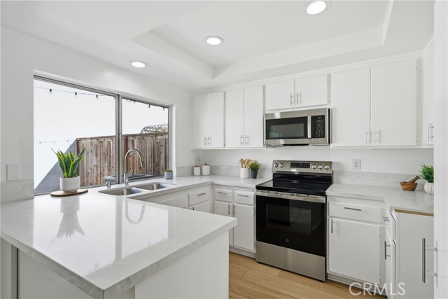 Welcome to 3 Wintergreen in Irvine, a beautifully refreshed single-story end-unit home located in the highly desirable Deerfield community. Offering 3 bedrooms, 2 bathrooms, and 1,167 square feet, this thoughtfully updated residence combines comfort, style, and convenience in one of Irvine's most central locations. As you enter the home, you are greeted by a bright open-concept living room with vaulted ceilings that create a spacious and inviting atmosphere filled with natural light. The entire home has been completely refreshed with brand new luxury vinyl plank flooring throughout, fresh interior paint, and new recessed lighting that enhances the modern feel. The updated kitchen features quartz countertops, a new sink, updated fixtures, and stainless steel appliances, and flows seamlessly into a dedicated dining area. Just beyond the dining space, a sliding door opens to a private interior courtyard that provides the perfect setting for outdoor dining, relaxing, or entertaining, and conveniently connects to the side-by-side two-car garage. This true single-story floor plan offers three generously sized bedrooms, including a spacious primary suite located toward the back of the home for added privacy. The primary bathroom has been refreshed with quartz countertops, a new sink, updated fixtures, a new toilet, and an upgraded shower enclosure with a new glass door, while the hallway bathroom has also been tastefully updated with new flooring, quartz countertops, a new sink, updated fixtures, a new toilet, and a refreshed shower enclosure and door. Additional upgrades include a brand new HVAC system and AC condenser installed just one week ago, providing comfort and peace of mind. Perfect for first-time buyers, young families, downsizers, or investors, this home is ideally located in the heart of Irvine, within walking distance to nearby shopping, restaurants, a market, and a gas station, and offering easy freeway access and close proximity to local schools. Situated in a quiet section of the community and just steps from the neighborhood pool, this home offers the perfect blend of comfort, convenience, and lifestyle. Opportunities like this rarely become available in Deerfield, and homes like this do not last long. Come experience everything 3 Wintergreen has to offer.