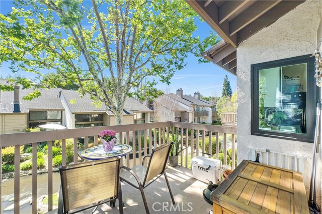 Experience the opportunity to own a luxurious view home in South Orange County. This private end-unit condo is filled with natural light and features a large new side window, creating a bright and inviting living space. Step through the brand-new sliding glass door onto your private balcony and enjoy tranquil stream views and beautiful sunsets. Upstairs, the spacious loft features new flooring and offers flexible use as a home office, yoga studio, or additional storage area. This is a beautifully upgraded condo that combines comfort, style, and functionality. Existing 830 sf to include the loft. Recent improvements include brand-new windows and a sliding door with a lifetime warranty, as well as luxury vinyl flooring with new padding for exceptional comfort underfoot. The bathroom has been fully renovated with new tile, a new tub, a new vanity, Kohler solid brass shower fixtures, a premium faucet set, and elegant cabinetry. Additional upgrades include new interior doors, a new washer, and a new dryer. The sellers invested approximately $35,000 in recent improvements before deciding to move to a larger home. Located in the desirable Quail Creek community, residents enjoy lush landscaping, peaceful streams, and scenic lakes that are home to wild birds, turtles, and koi fish. Nearby trails along Oso Parkway offer opportunities for hiking and views of local wildlife, including horses and llamas. The community also features a brand-new roof, six EV charging stations, and ample guest parking. The HOA dues of $522 per month include cold water, hot water, insurance, and access to resort-style amenities such as two pools, two spas, two saunas, two tennis courts, and maintenance of the beautifully landscaped grounds, creeks, and lakes. Conveniently located, this home is approximately 15 to 20 minutes from Irvine, John Wayne Airport, Dana Point Harbor, and Laguna Beach, where you can enjoy renowned beaches, dining, and festivals.