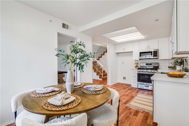 Welcome to the Crystal Canyon Community! A peaceful, quiet, PUD (Planned Unit Development) that is turn-key ready. This much sought after end unit features a gated private patio entry and an attached two-car garage with direct access. You'll love coming home to enter the sunny spacious living room with vaulted ceilings and a cozy fireplace. There is a remodeled half bathroom conveniently located downstairs for guests. The completely remodeled large kitchen with new cabinetry, countertops, sink and top-of-the-line stove and dishwasher opens to the formal dining room. Upstairs you'll find a large primary suite with a walk-in closet and a dressing/vanity area and 2 more spacious bedrooms with a remodeled 3/4 bathroom. Freshly painted throughout, all new carpet, and new central air and heat (newly installed one year ago) add to the home's comfort and appeal. The community offers beautifully landscaped grounds with a greenbelt, pool, spa, tennis courts, and plenty of guest parking. Enjoy mature trees, quiet surroundings, and spectacular mountain views. Conveniently located near downtown Azusa's shops and restaurants, close to APU and Citrus College, with easy access to the Metro Gold Line. Welcome to your new home!