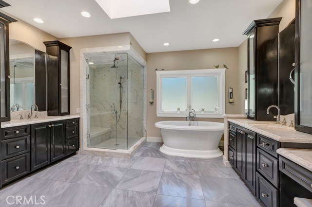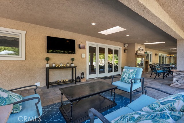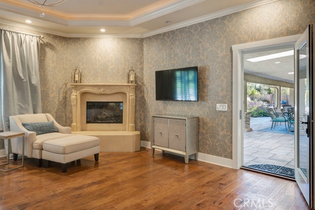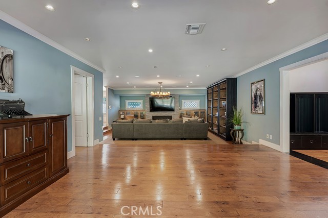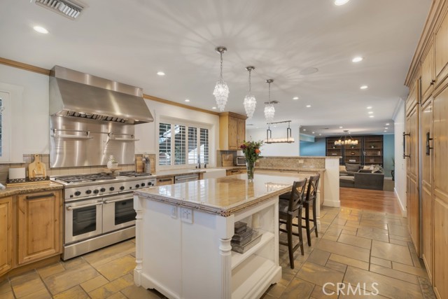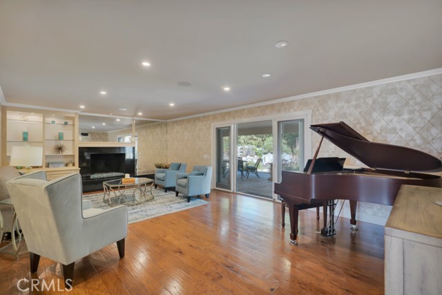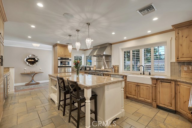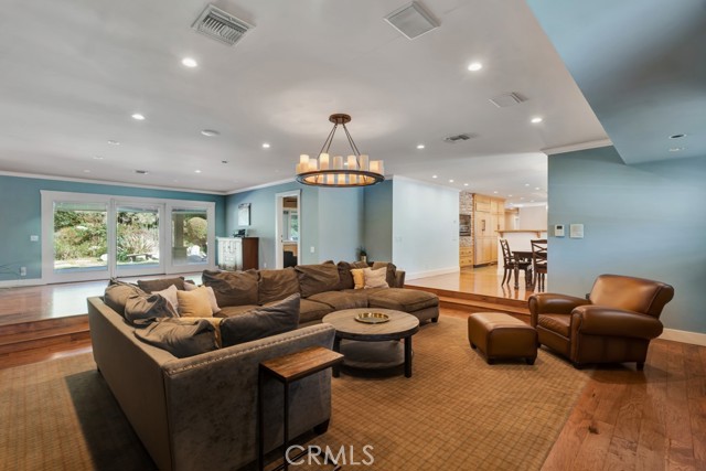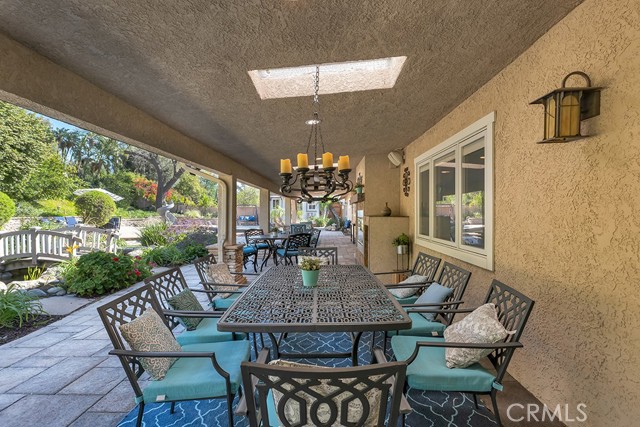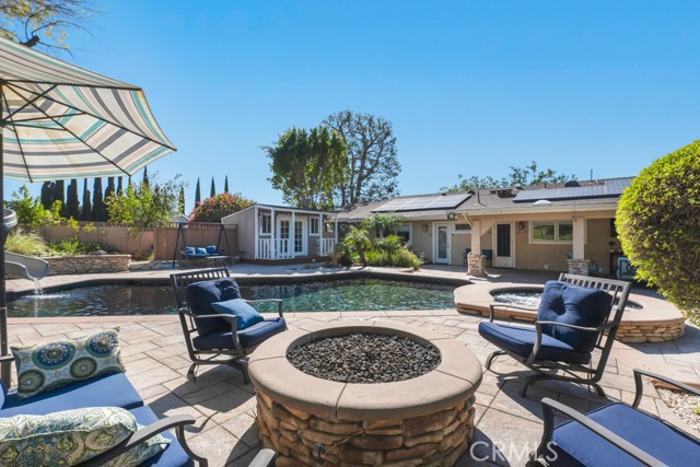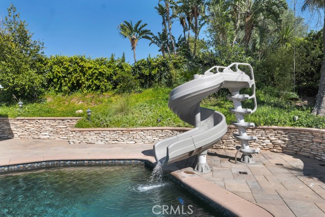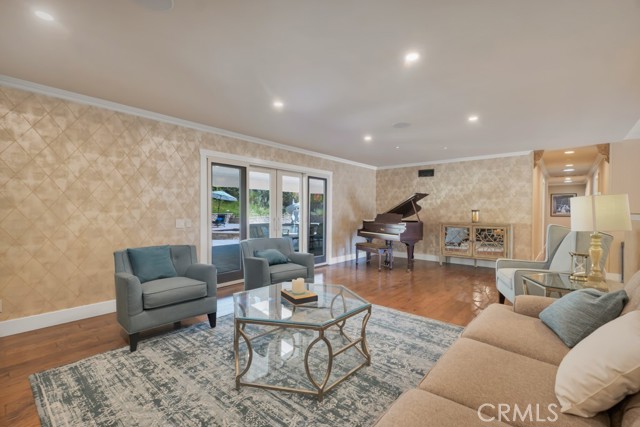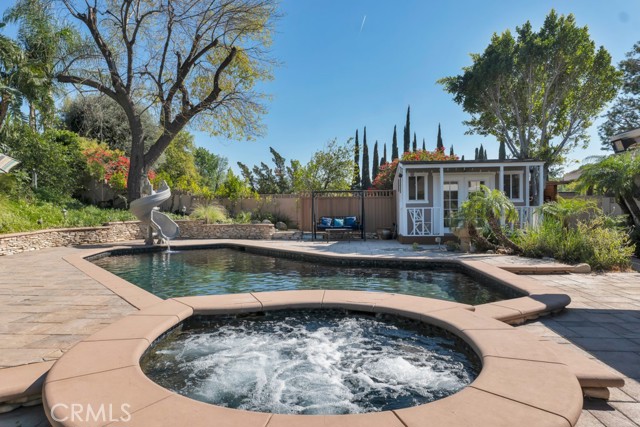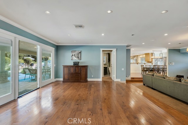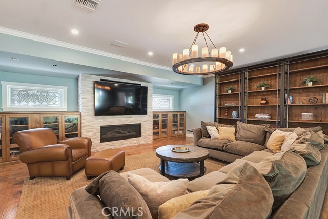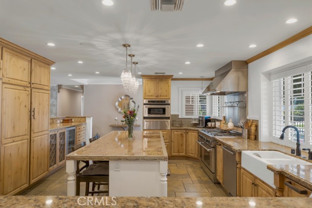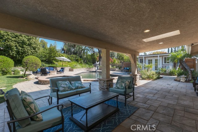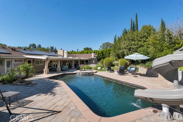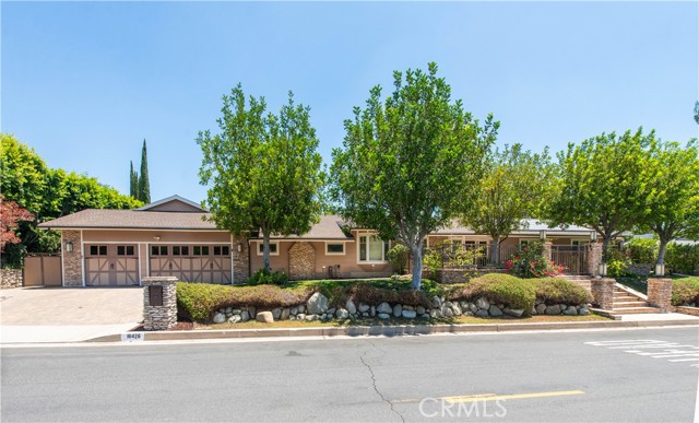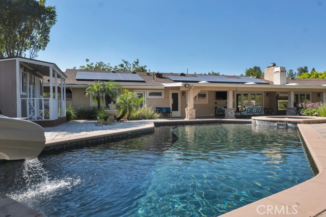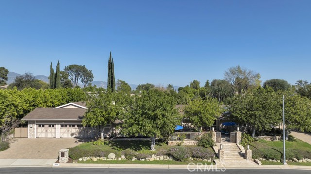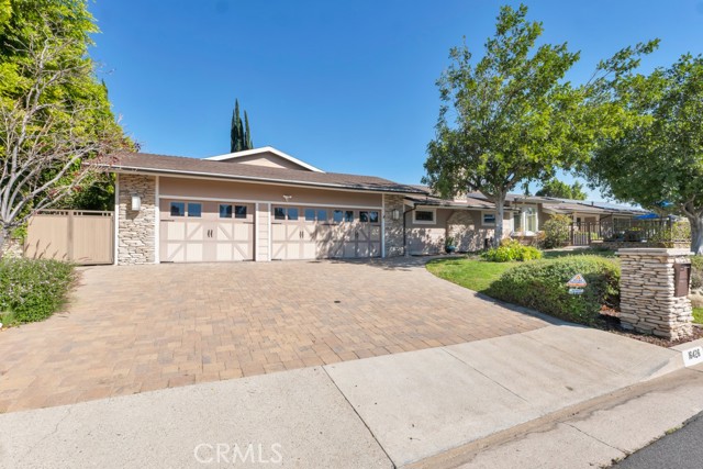 Welcome to one of the most spectacular single-story, ranch style custom estates in Knollwood! The moment you arrive, the striking curb appeal sets the tone — beautiful rock hardscaping leads to a private, gated courtyard with serene fountain and tranquil seating areas that greet you. Step through custom wood double doors w/beveled glass and discover nearly 4,300 sq. ft. of luxurious living space. Upon entry you immediately notice the views of the resort-like backyard through the oversized sliding glass doors of the spacious and bright living room that has custom built-ins and fireplace. At the heart of the home is a gourmet chef's kitchen, designed to impress w/Argentinean marble floors, oversized center island, DCS 6-burner stove, double ovens, warming drawer, dual sinks, Sub-Zero refrigerator, wine fridge, fireplace & exceptional storage. The kitchen flows seamlessly into the dining room and onward to a step-down, expansive family room w/custom built-ins and cozy fireplace. Surrounding the family room is a bonus upper open area, ideal for bar or pool table- the perfect entertaining spot w/oversized glass sliders that frame serene views of the entertainer's backyard — creating a seamless indoor-outdoor flow. Thoughtful floor plan features two private wings, creating an ideal layout for the five bedrooms and four baths. The primary retreat is a sanctuary of luxury, boasting a fireplace, custom up lighting, built-in wardrobes and fully finished walk-in closet. The spa-like primary bath features Carrera marble, heated floors, dual vanities, whirlpool soaking tub, oversized steam shower, and skylight that bathes the space in natural light. Two of the additional bedrooms are spacious en-suites, perfect for guests or family. A rare and impressive feature is the extra-large laundry room, designed to accommodate two washers and two dryers, with abundant cabinetry, a utility sink & direct access to yard. The resort-style backyard is an entertainer's dream: an extended covered patio w/fireplace, Pebble Tec salt water pool w/slide, stylish spa-inspired outdoor shower, koi pond, putting green, low-maintenance turf, detached pool room & large gated/enclosed carport area. Additional highlights include mud room, finished three-car garage w/epoxy floors and built-in cabinets, solar, 3 A/C zones, CAT/cable wiring throughout. Homes like this are a rare find — offering custom design, privacy and luxury all in one. This extraordinary estate is truly one of a kind and won't last!